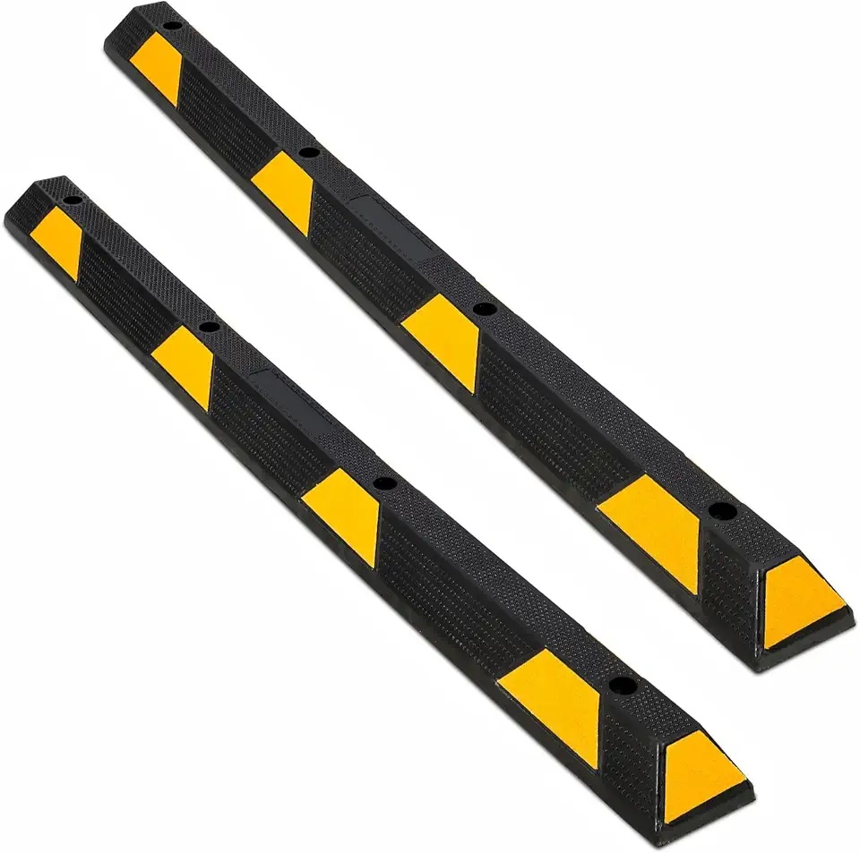 2-pack 72-inch heavy-duty rubber parking curbs with 55,000 lbs capacity. Protects vehicles, garages, or lots from over-parking. Weather-resistant and durable – practical safety solution.